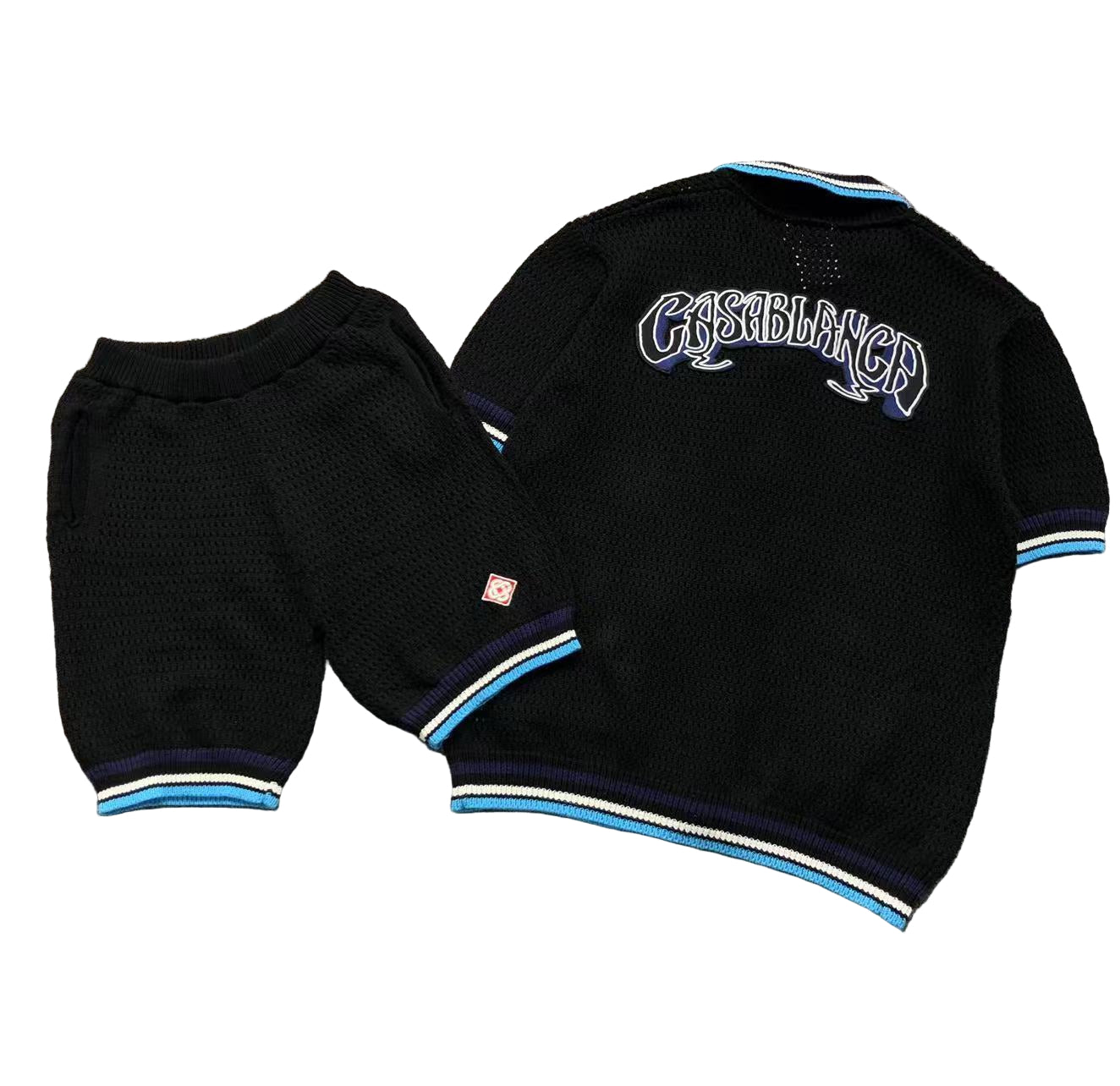 Conjunto Casablanca Crochê Preto/Azul